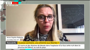 Anne-Sophie Pelletier a voté contre le certificat vert numérique européen, et explique sur France Info que le pass sanitaire français est tout aussi inquiétant sur